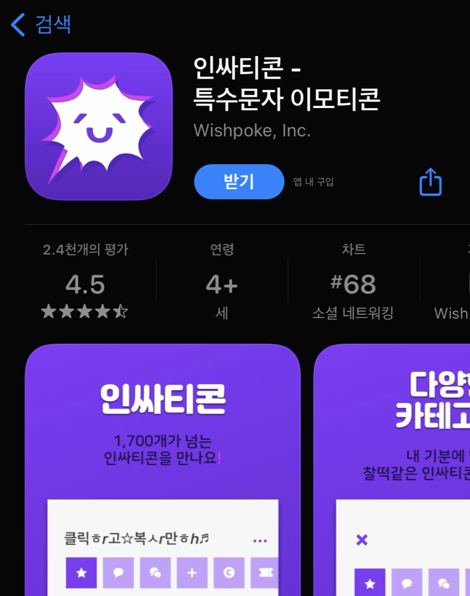인스타그램에서 하트 이모티콘 특수문자를 사용하기 위해서 특수문자 이모티콘을 제공해주는 [인싸티콘] 앱을 설치해주세요.