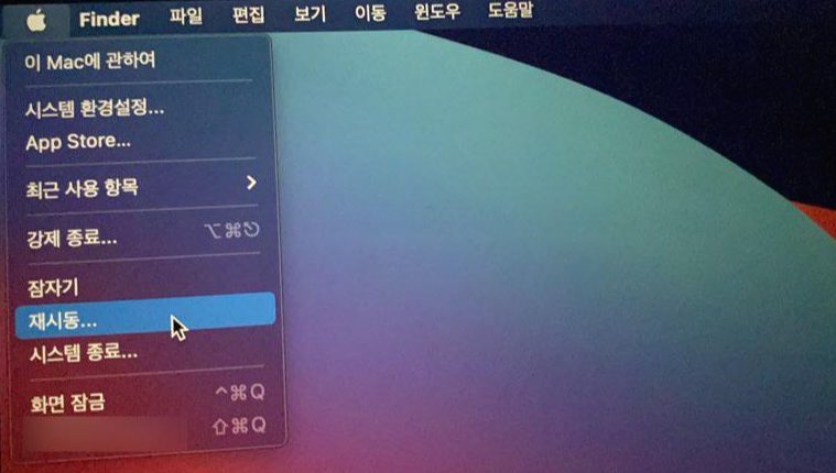 이번에는 아예 맥북을 강제종료하는 방법을 알아보겠습니다. 맥북 강제종료 단축키는 [control + command + 전원] 키를 눌러주시면 됩니다. 이렇게 맥북 단축키를 통해 맥북 강제종료를 하셔도 되고, 다른 방법으로는 [재시동]을 해주시면 됩니다.