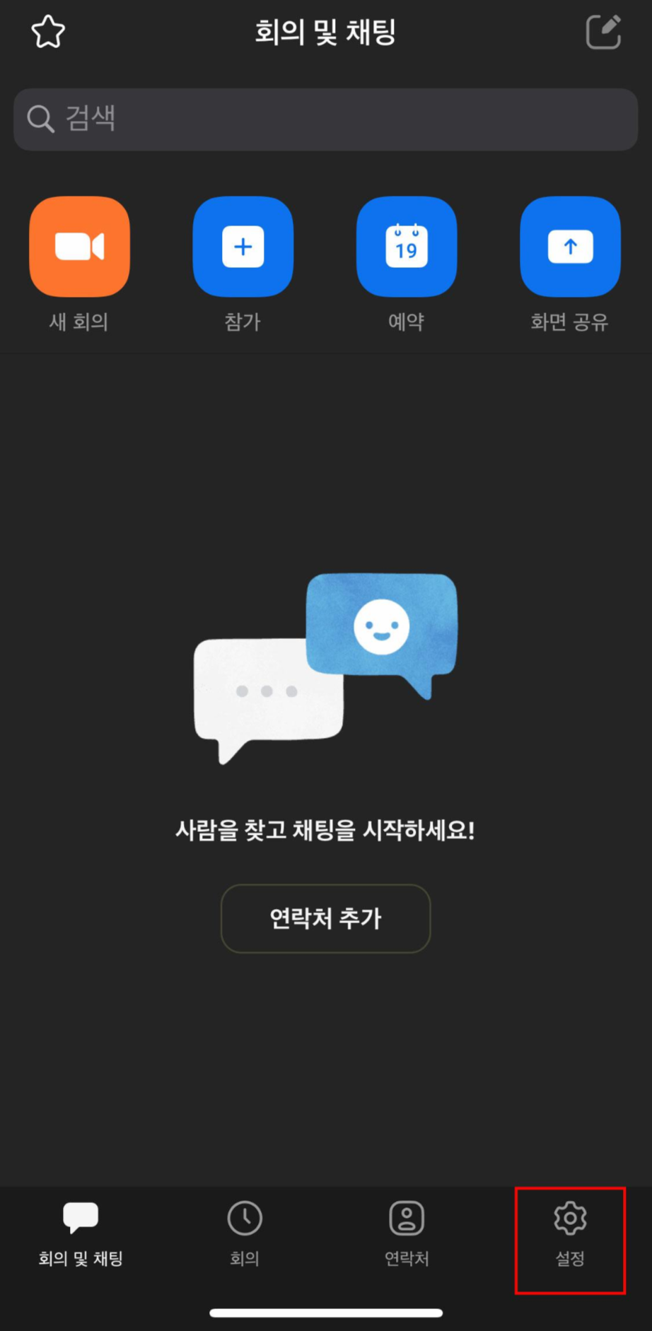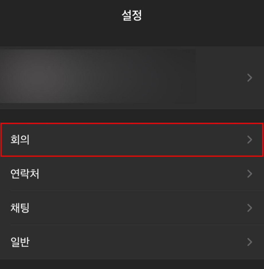 [설정] 페이지에서 나의 프로필 계정 바로 아래에 있는 [회의] 메뉴를 눌러주세요.
