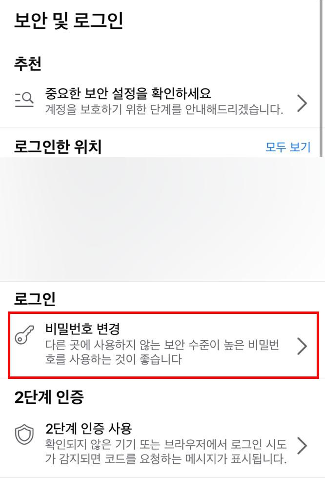 [보안 및 로그인]으로 들어오신 후 조금 아래에 보시면 [로그인] 영역에 [비밀번호 변경] 항목이 있습니다. [비밀번호 변경]을 눌러서 비밀번호를 변경해주시면 됩니다.
