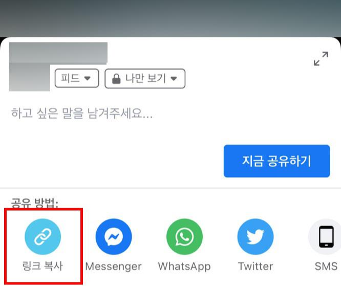 [공유하기] 버튼을 누르시면 위와 같이 보이실겁니다. 여기에서 [링크 복사]를 눌러주세요.