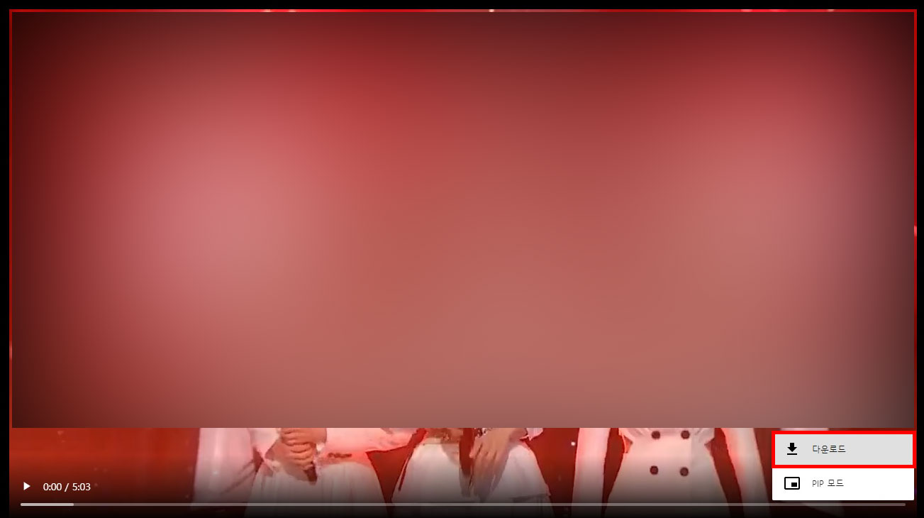 [Download Video in HD Quality]를 누르시면 새 창으로 영상이 나오는 페이지가 열립니다. 영상에서 우측 하단에 보시면 메뉴 버튼이 있습니다. 메뉴를 누르신 후, [다운로드]를 눌러주세요.