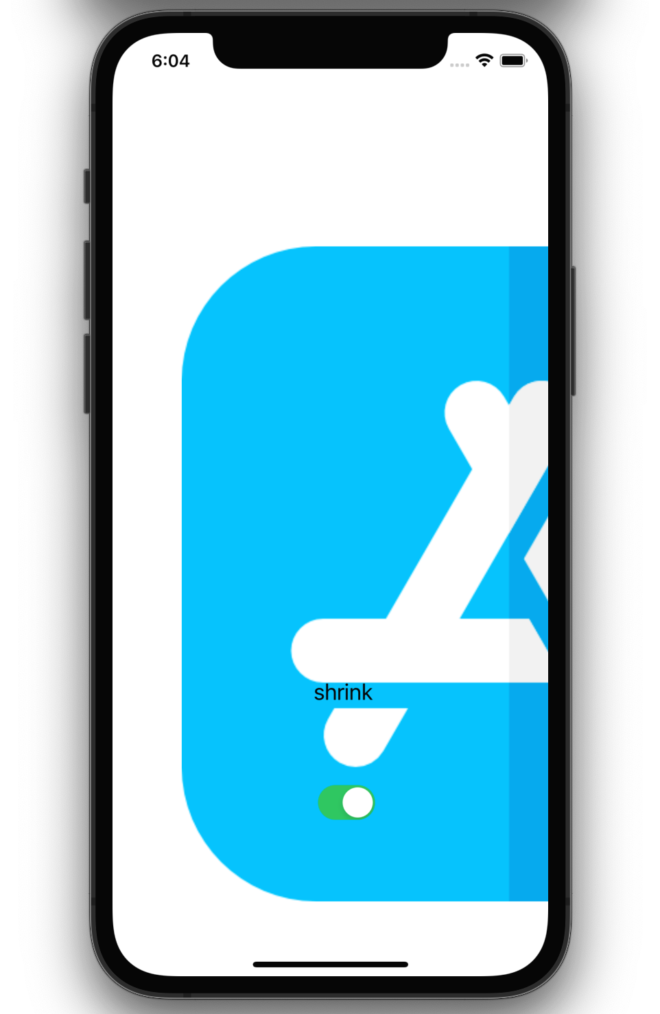 또한, 이미지 변경 스위치를 누르면 스위치의 On/Off 상태에 따라서 이미지가 변경됩니다. On 상태에는 파란색의 앱스토어 이미지가 나오고, Off 상태에는 검은색의 앱스토어 이미지가 나옵니다.