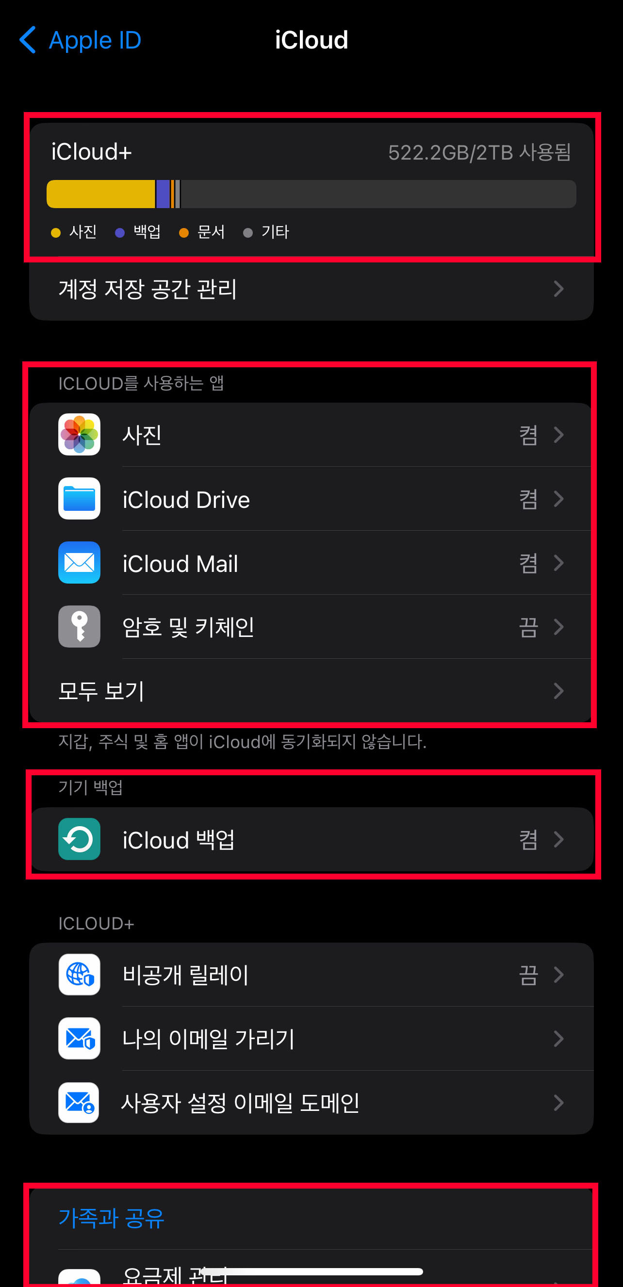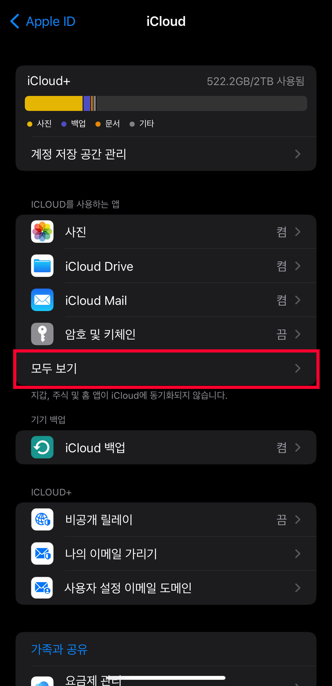 저는 아이클라우드 2TB를 구매해서 사용중이기 때문에 현재 총 저장공간이 2TB로 표시되고 있는 점 참고부탁드립니다.