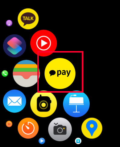 보통 아이폰에 카카오페이 어플이 설치가 되어 있다면 애플워치에도 카카오페이 앱이 보이실거예요. 작게 pay라고 적힌 노란색상의 카카오페이 앱을 눌러서 실행해주세요!