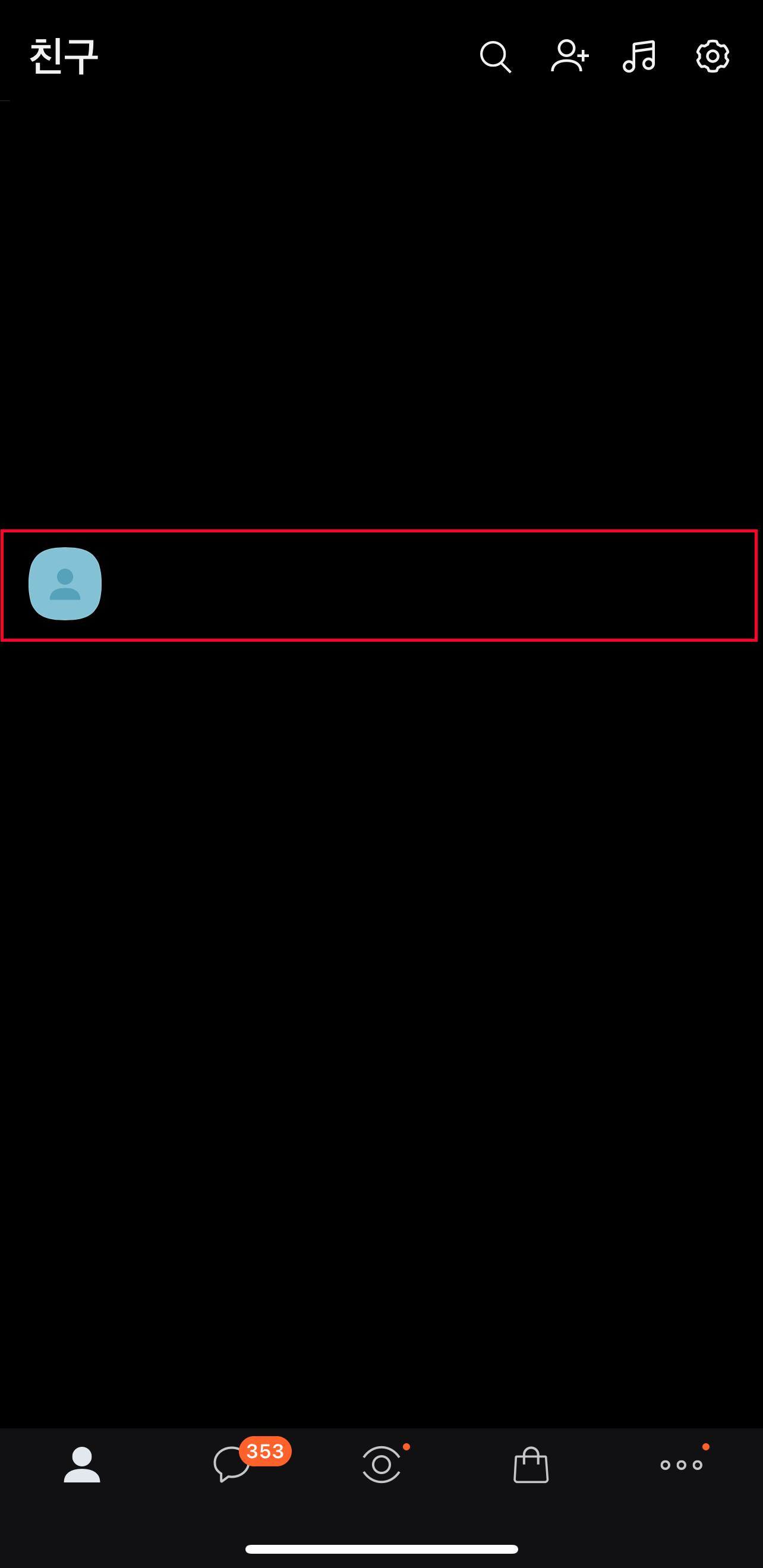 해당 친구에게 저를 [메시지 차단, 프로필 비공개]로 차단을 해달라고 부탁을 하고 현재 저는 [메시지 차단, 프로필 비공개]로 차단당한 상태에서 다시 확인해보도록 하겠습니다. 나를 차단한 친구를 누르면 친구의 프로필 영역이 나오는데 여기서 우측 상단 메뉴를 확인해보겠습니다. 뭔가 이상해진 것이 느껴지죠?
