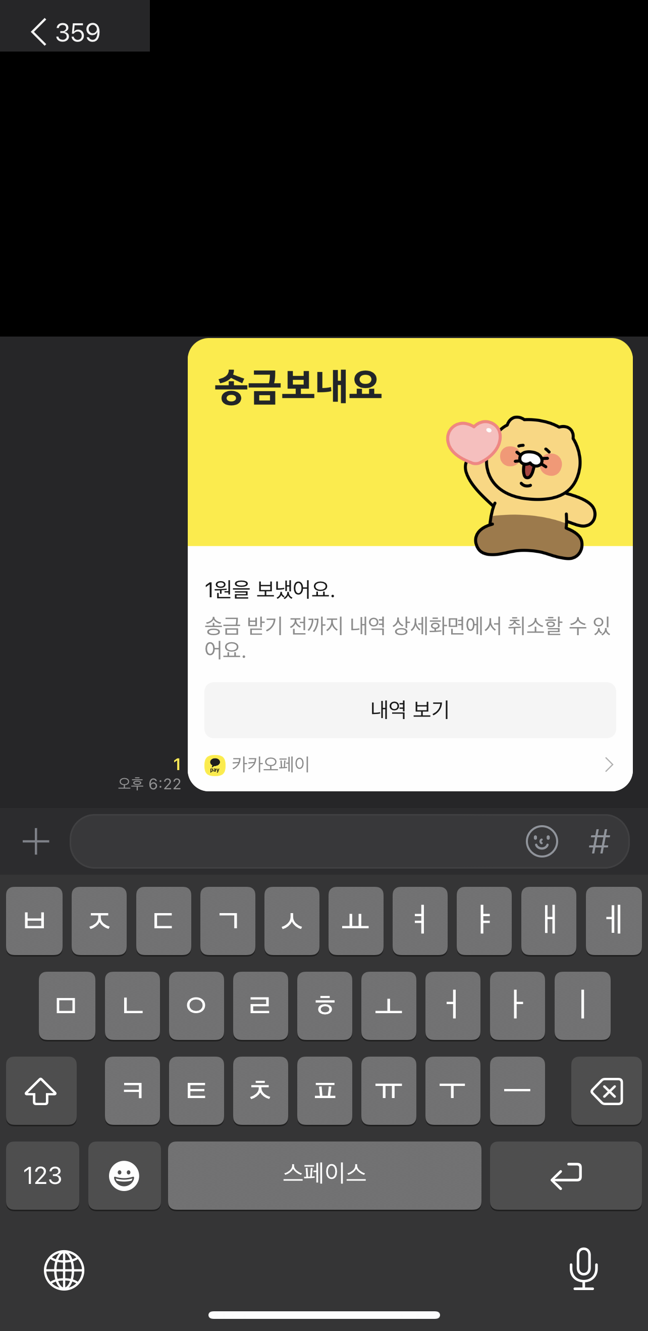 그럼 차단을 당한 상태에서는 송금이 안되나요? 아니요! 차단이 된 상태에서도 송금은 가능합니다. 채팅창에서 바로 송금도 가능하고 친구 프로필에서도 송금이 가능합니다. 대신 이 보낸 송금 옆의 1은 사라지지 않습니다. 이미 상대방은 차단을 했기 때문에 내가 송금을 했는지 안했는지 메시지가 차단되었으니 송금 내역을 확인할 수가 없는거죠. 그렇기 때문에 상대방이 확인조차 할 수 없는 이 송금은 며칠이 지나 자동으로 송금 취소가 되게 됩니다..