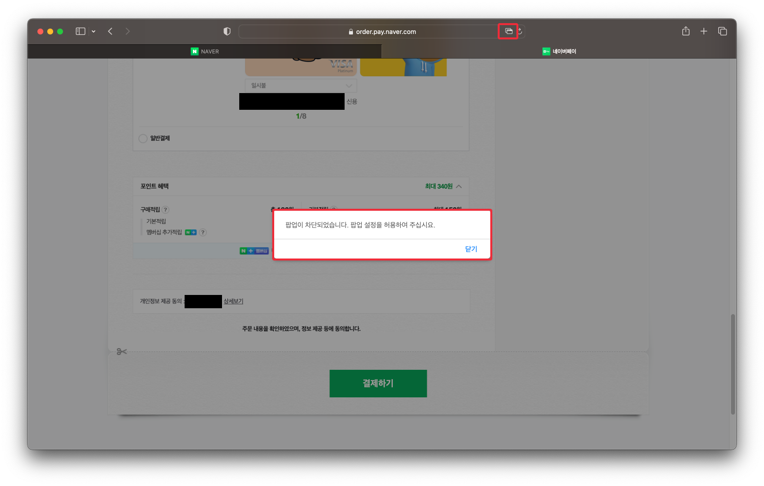 이제 다시 한 번 확인해보도록 하겠습니다. 사파리 창을 다 닫은 다음, 다시 해당 사이트에 접속해보시면 이번에는 팝업이 바로 한 번에 노출되는 것을 확인할 수 있습니다. "허용"으로 설정을 해두었기 때문에 별도로 다시 팝업을 노출시킬건지 설정하지 않아도 바로바로 팝업을 확인할 수 있습니다.