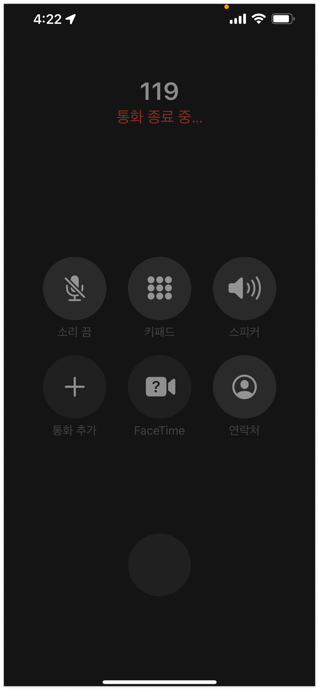혹시나 잘못해서 긴급구조요청 전화를 걸게 된 경우 바로 재빠르게 통화종료를 눌러주셔야 합니다. 이미 요청한 부분을 별도로 취소할 방법은 없기 때문에 혹시나 전화를 잘못 걸게 되신 경우에는 바로 중단 또는 종료를 눌러주시면 됩니다.
