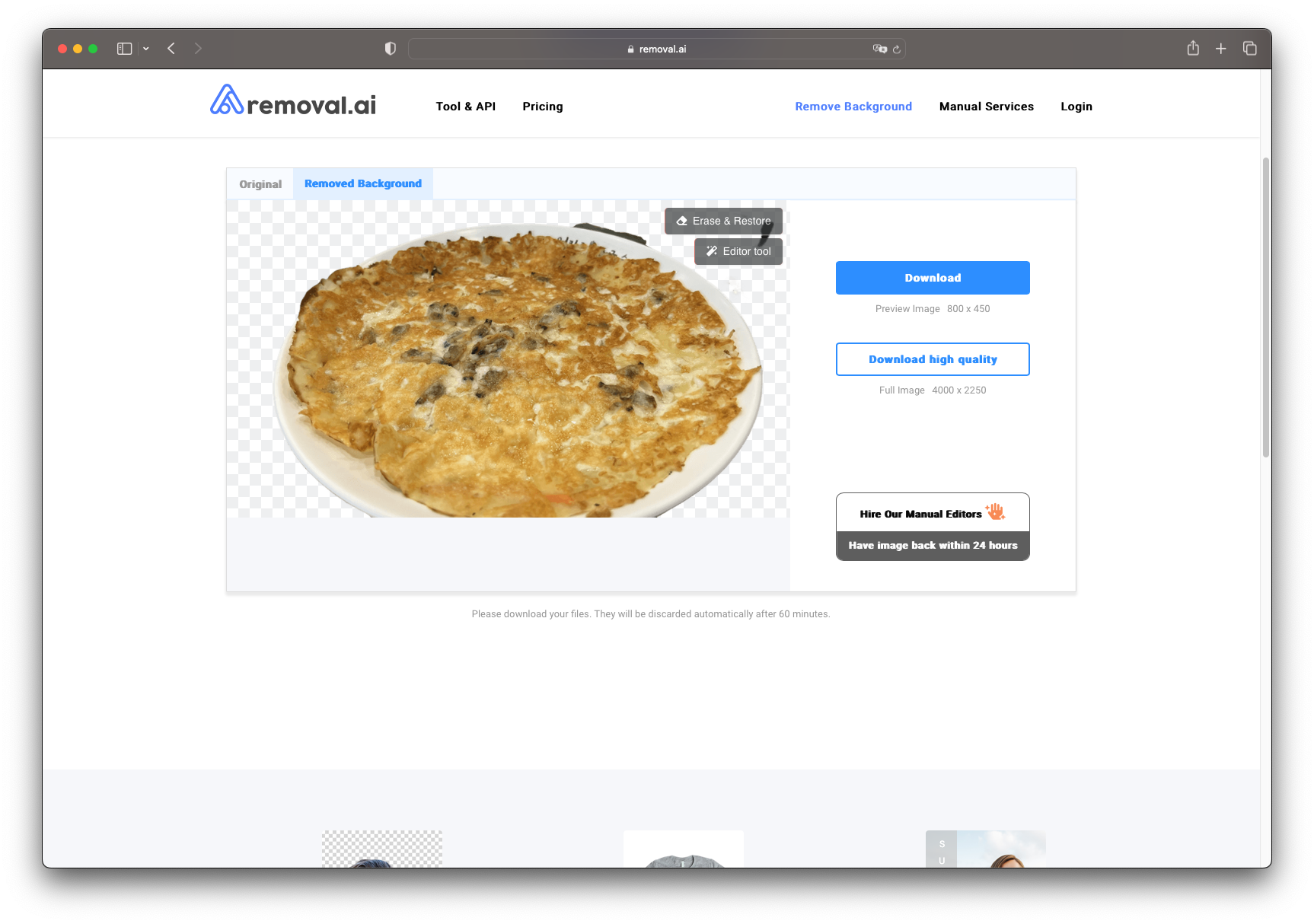 이 사이트도 마찬가지로 누끼를 따고자 하는 이미지를 선택해주시면 잠시 시간이 지나고 배경이 제거된 이미지가 나타나게 됩니다. 해당 이미지를 저장하고 싶으신 경우에는 우측 상단에 있는 [Download] 버튼을 눌러서 해당 이미지를 저장해주시면 됩니다.