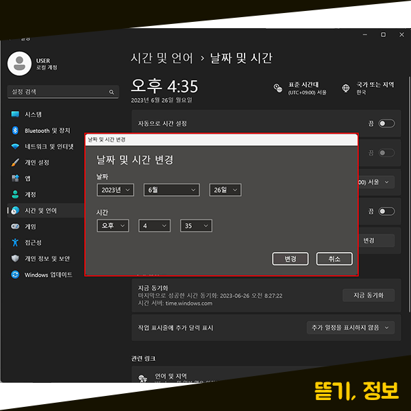 컴퓨터 시간 설정 어떻게 해야 할까요?