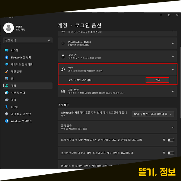 Windows11 윈도우 비밀번호 변경 해제 설정 방법