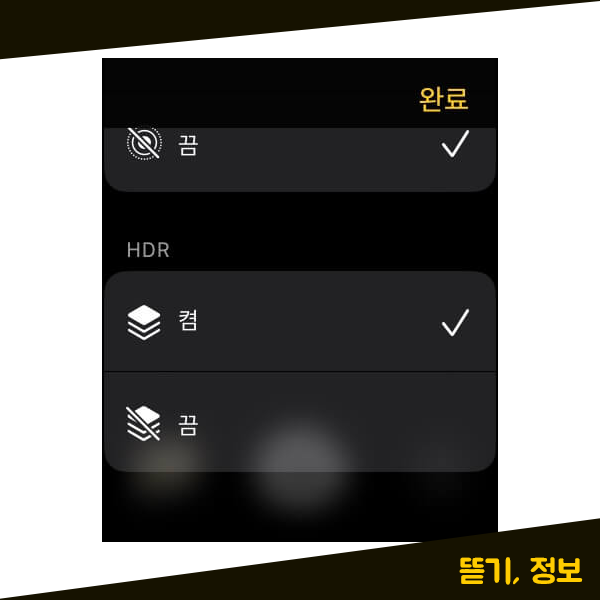 마지막으로 여기에서 HDR 기능도 설정 가능합니다. 켬과 끔으로 편하신대로 카메라 설정을 해주세요.