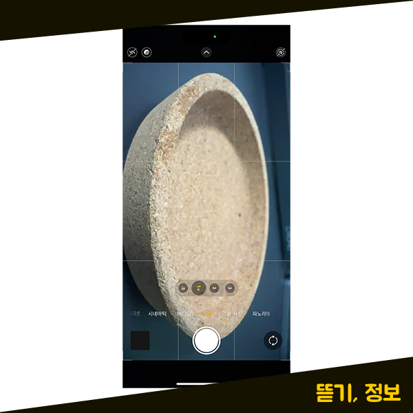 그럼 위와 같은 화면이 보이실 겁니다. 화면을 보시면 하단 가운데에는 카메라 셔터 버튼이 있고, 오른쪽에는 메뉴 버튼이 있습니다.