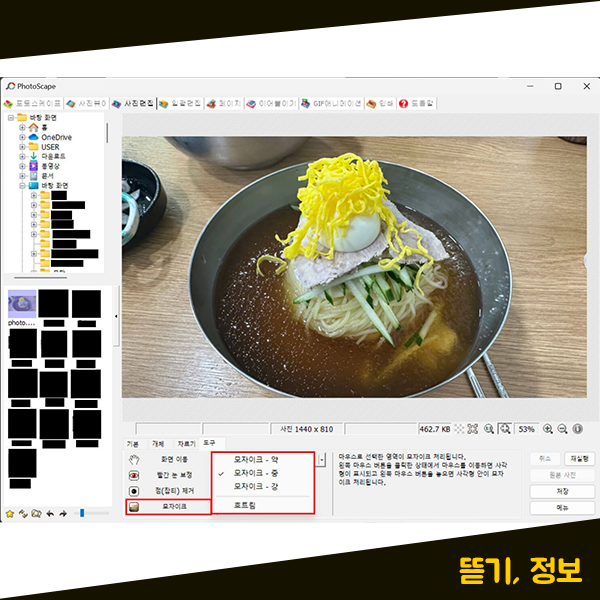 모자이크 강도를 선택하셨다면, 사진 영역에서 모자이크 하고자 하는 영역을 지정해주세요. 그러면은 설정한 강도로 바로 모자이크 처리가 된 것을 볼 수 있습니다.