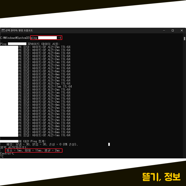 컴퓨터 인터넷 속도 체크 CMD ping 핑 테스트 방법