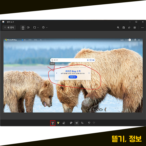 또한, 볼펜 및 형광펜으로 캡쳐한 이미지에 중요한 표시를 하거나 그림을 그릴 수도 있습니다.